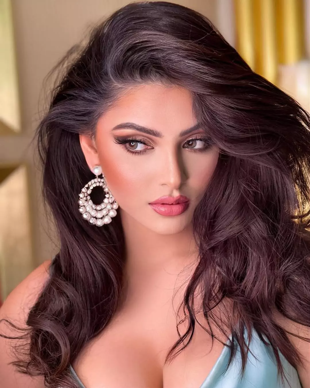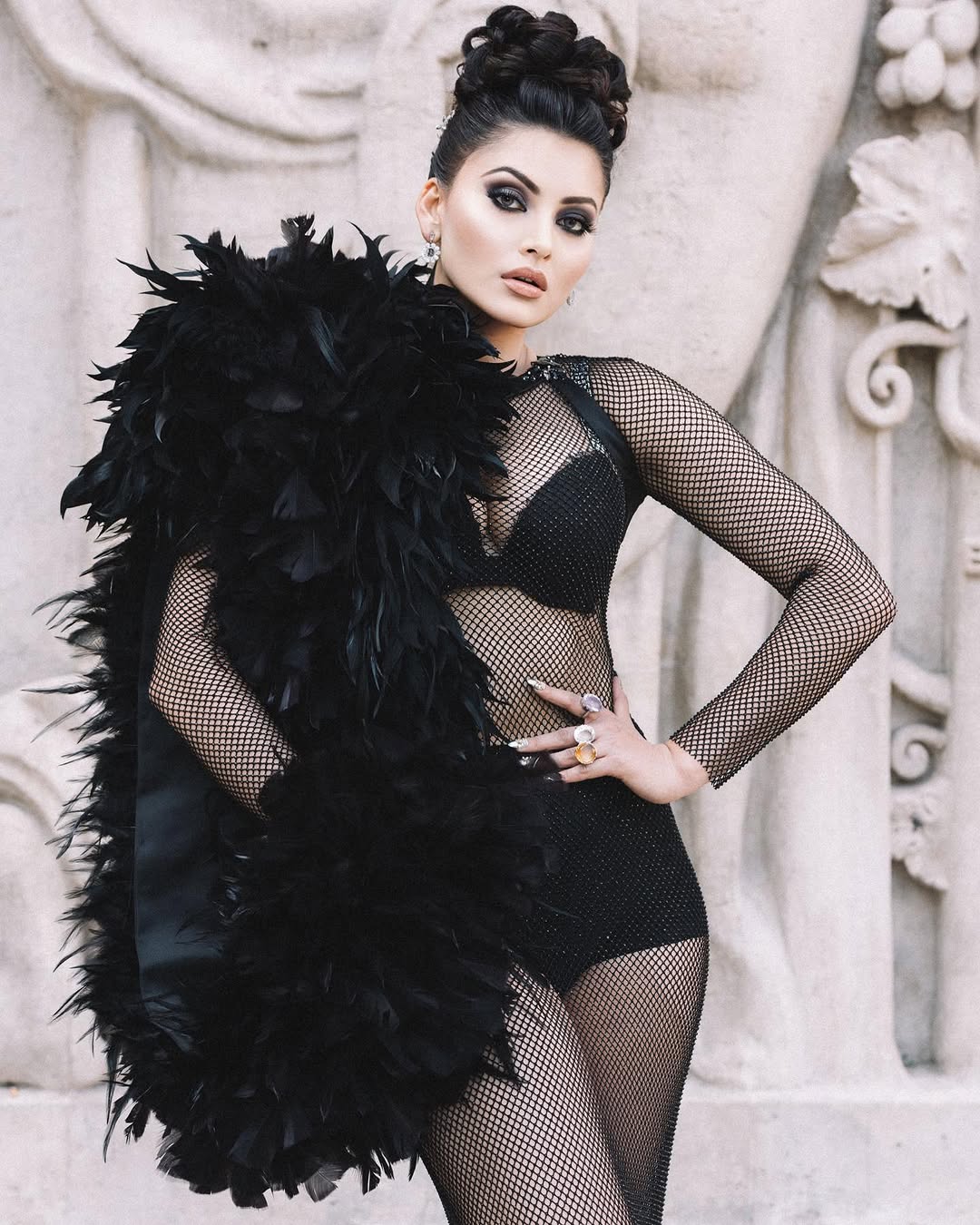 In the photo, Urvashi looks breathtaking with her bold makeup, glossy lips, and soft curls. The diamond necklace, bracelet and rings add a luxurious charm by making her look like a true diva.