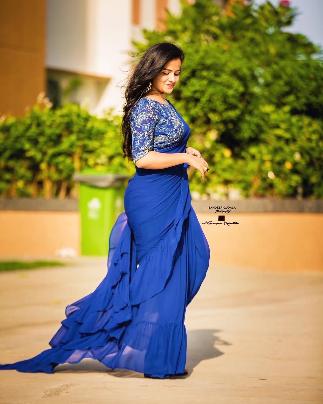 Actress Vaishnavi Chaitanya, Draped in a vibrant floral saree with soft curls and red roses adding a touch of elegance, she perfectly blends tradition and modern charm.