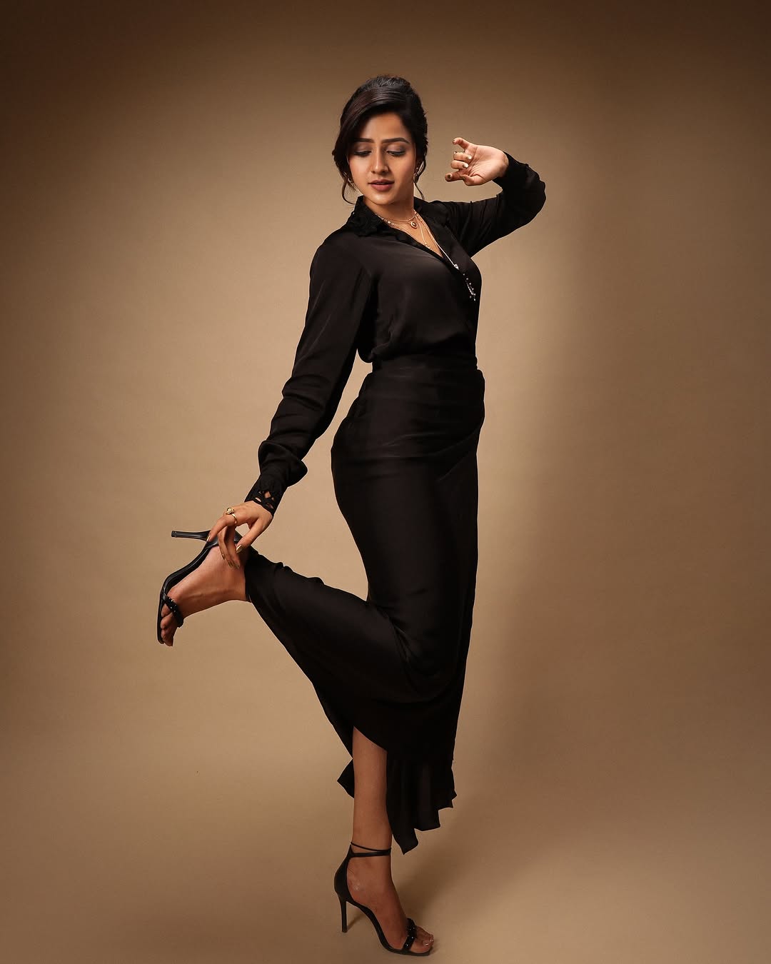 Have you seen Vaishnavi Chaitanya’s latest Instagram post? The rising star turned heads once again, this time in a graceful peach-hued saree from @issadesignerstudio. The soft velvet texture, paired with a contrasting black blouse, created the perfect mix of tradition and glam. With delicate curls cascading down and a touch of silver jewelry from @karnikajewelshyd and @bcos_its_silver, Vaishnavi brought elegance to life. The look was beautifully captured by @pranil_chintewar, with styling assistance from @being_mini. Isn’t she setting new fashion goals with each post?