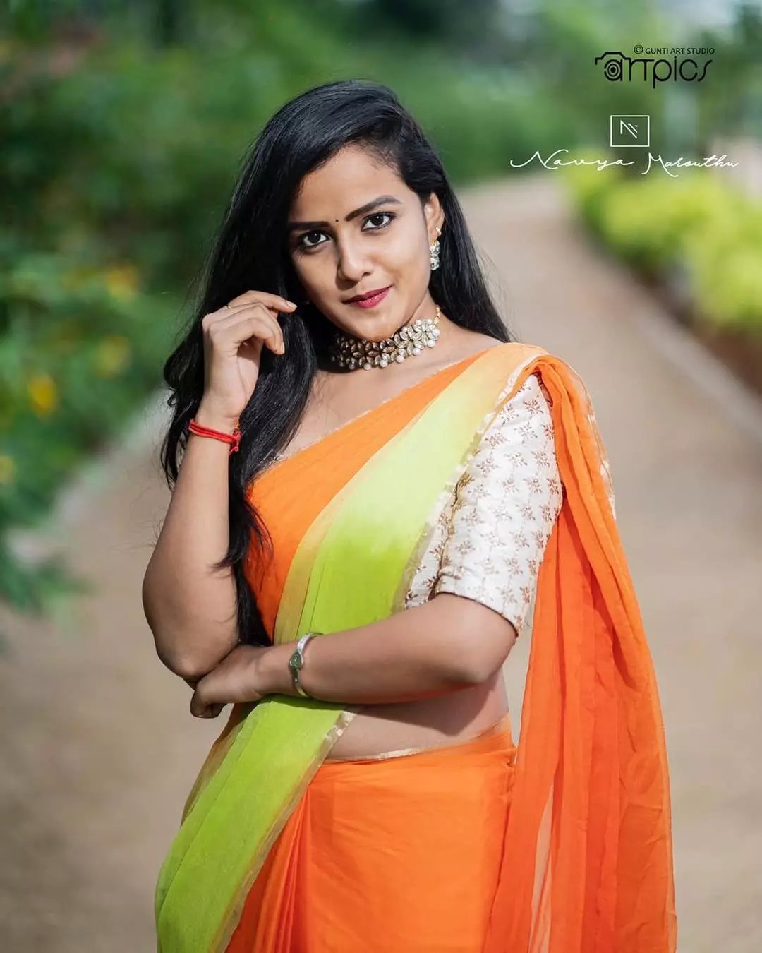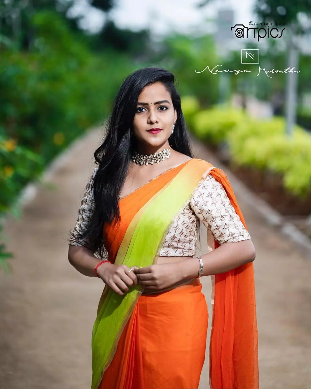 Being a proud Telugu girl, all types of sarees suit Vaishnavi perfectly. L Every saree she wears seems to be made just for her.