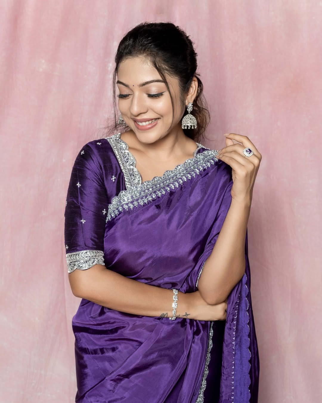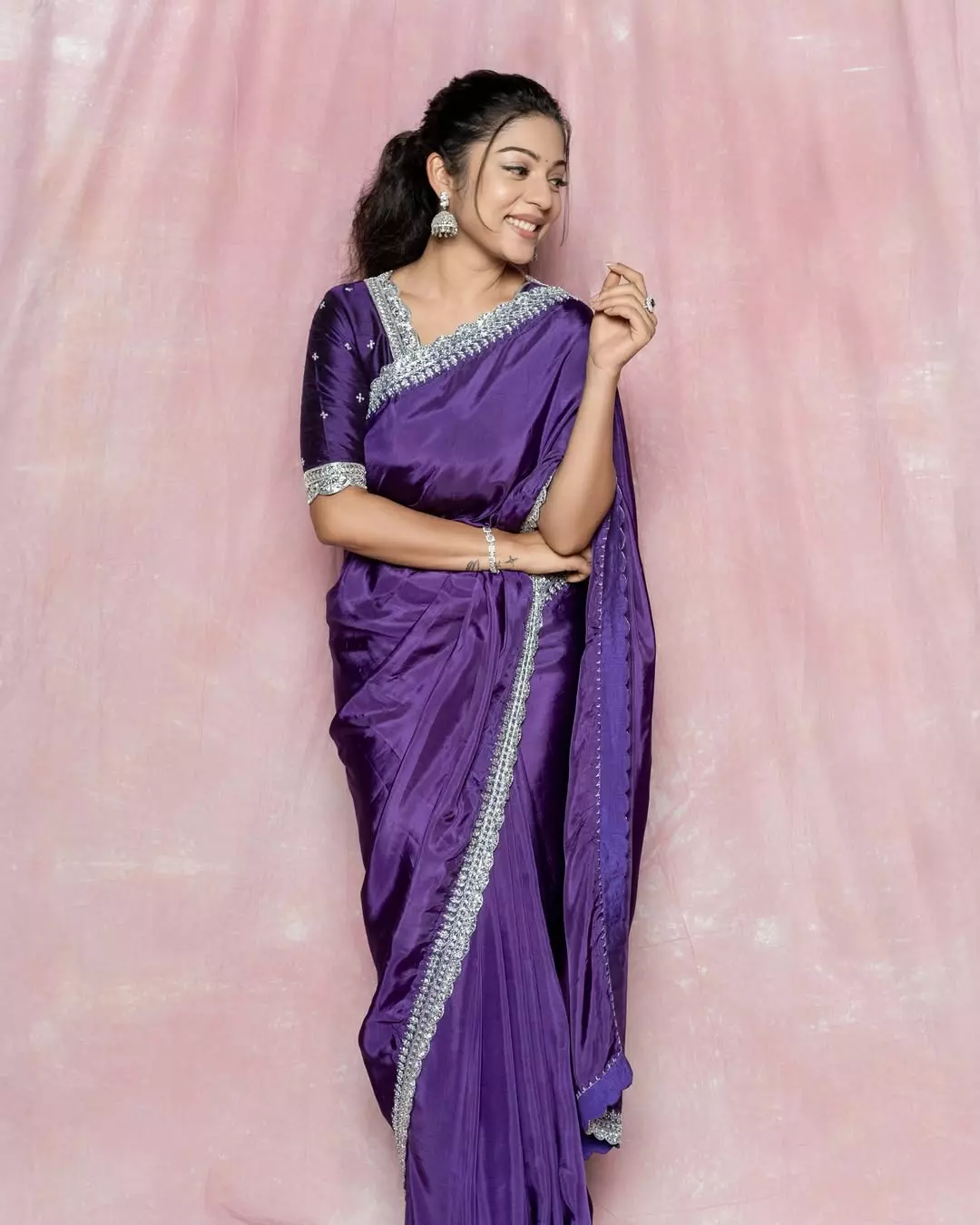Varsha Bollamma is a talented Indian actress known for her work in Tamil and Telugu films. She first gained attention through her Dubsmash videos, especially the ones where she mimicked actress Nazriya Nazim. She made her film debut with Sathuran in 2015 and has since appeared in movies like Vetrivel, Yaanum Theeyavan, 96, Bigil, Middle Class Melodies and Ooru Peru Bhairavakona. In Bigil, directed by Atlee, she played a football player, and the film became one of the biggest hits in Tamil cinema.