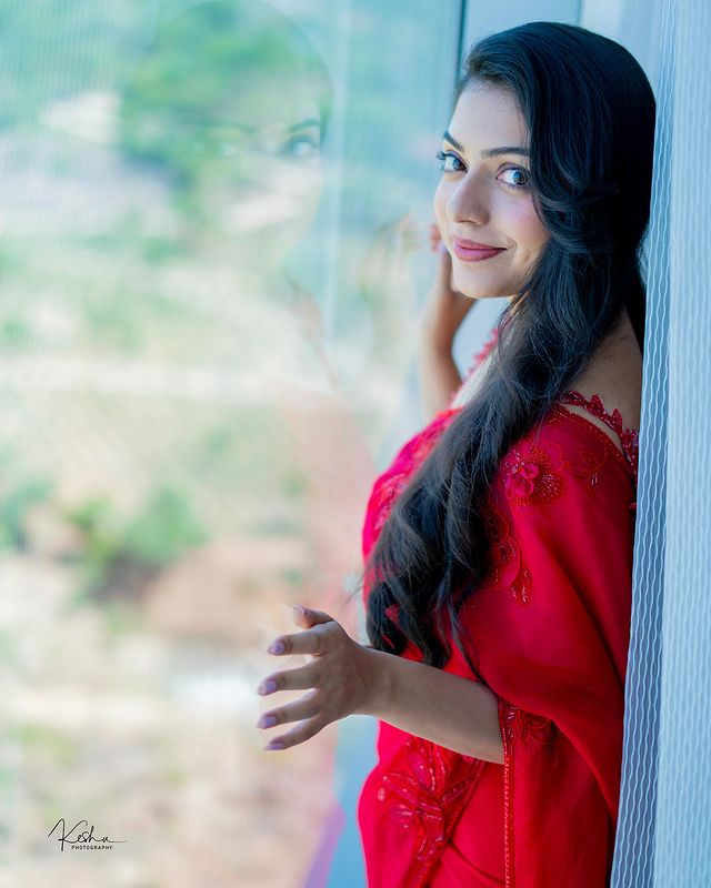 In the picture, Varsha is seen gracefully in a beautifully embroidered saree by @label-_swapnakopparapu paired with delicate jewellery from @aurelius-_jewels. Her look was styled by @officiallanahita, while the photography credits go to @valmikiramuphotography, capturing her natural radiance.