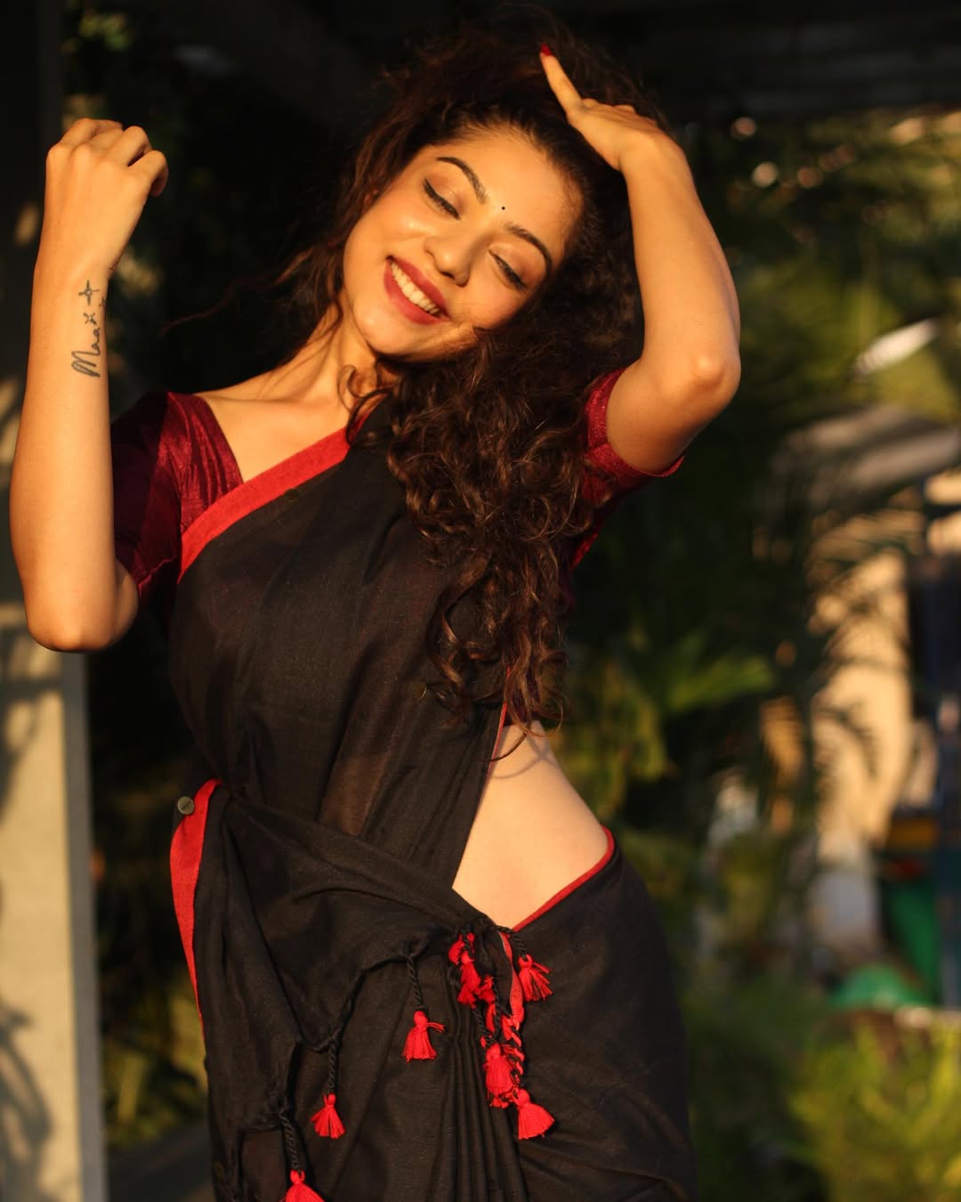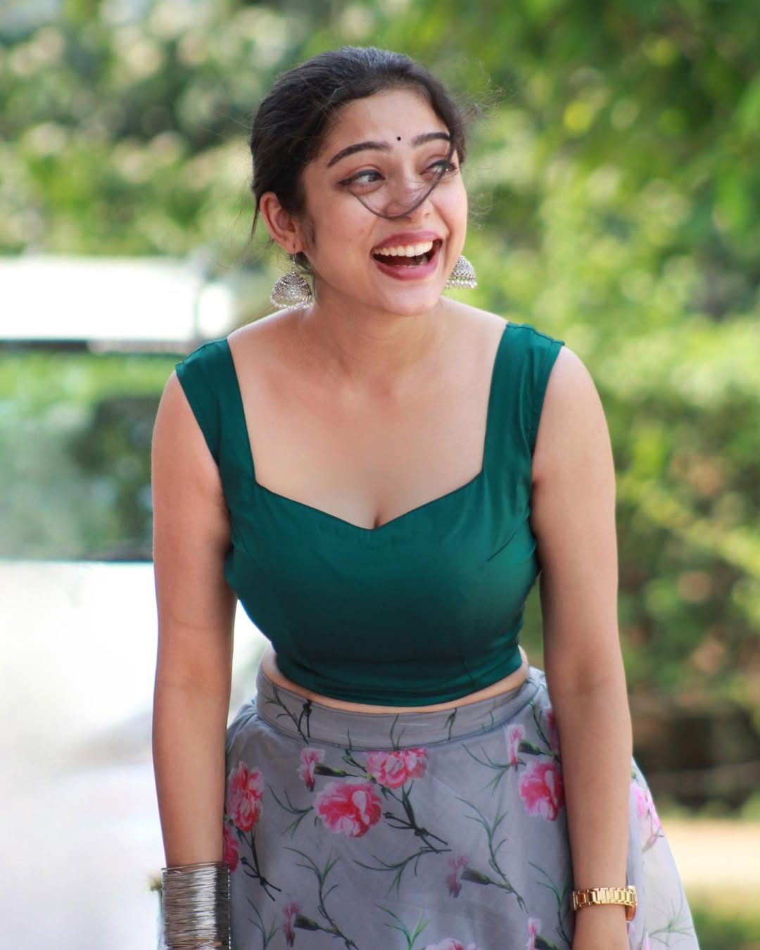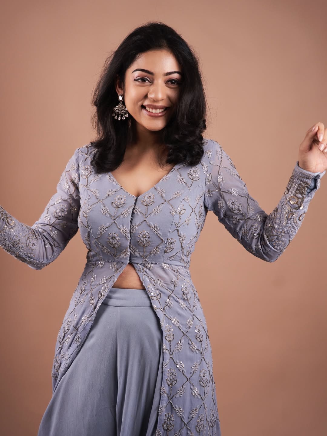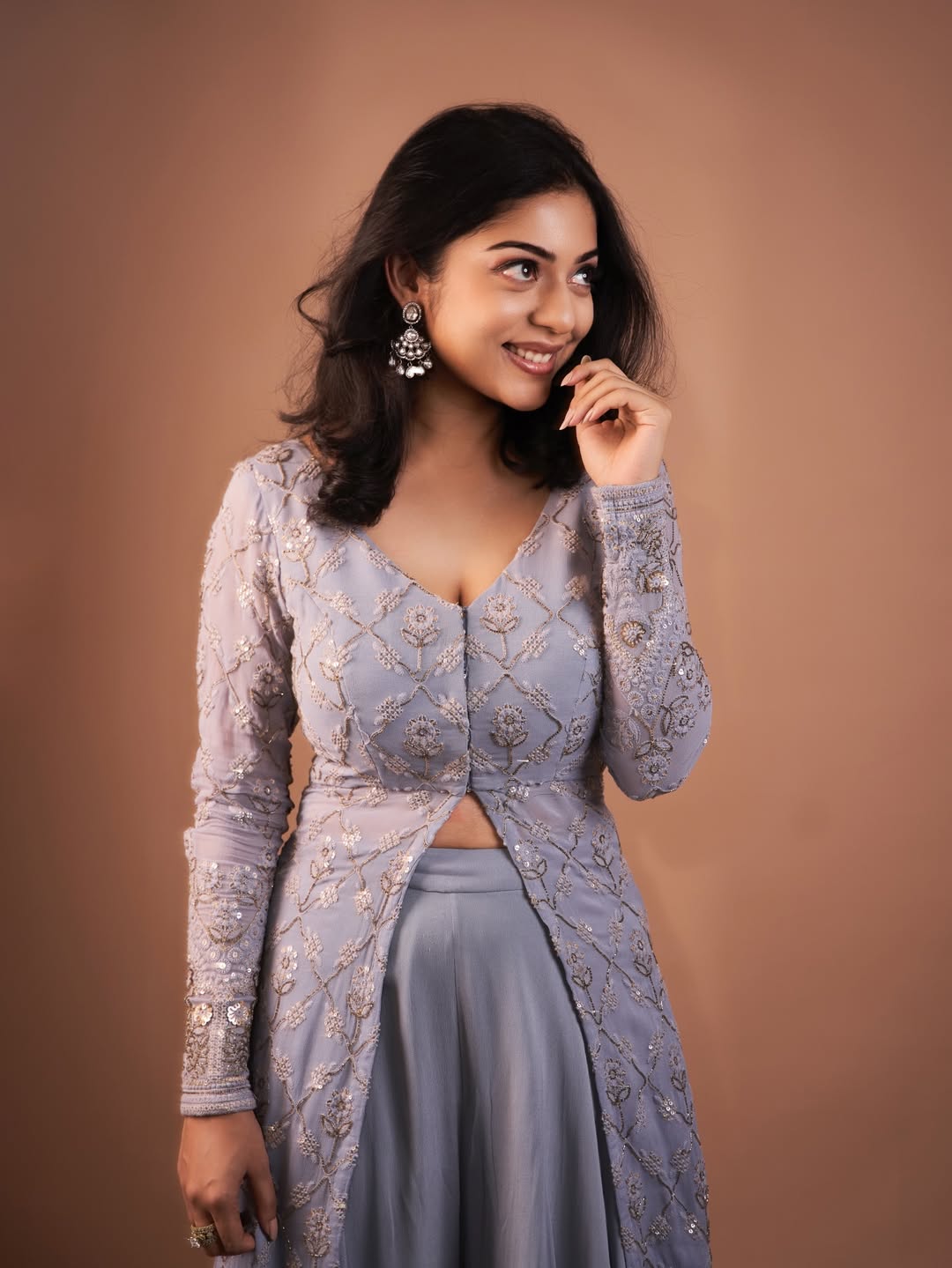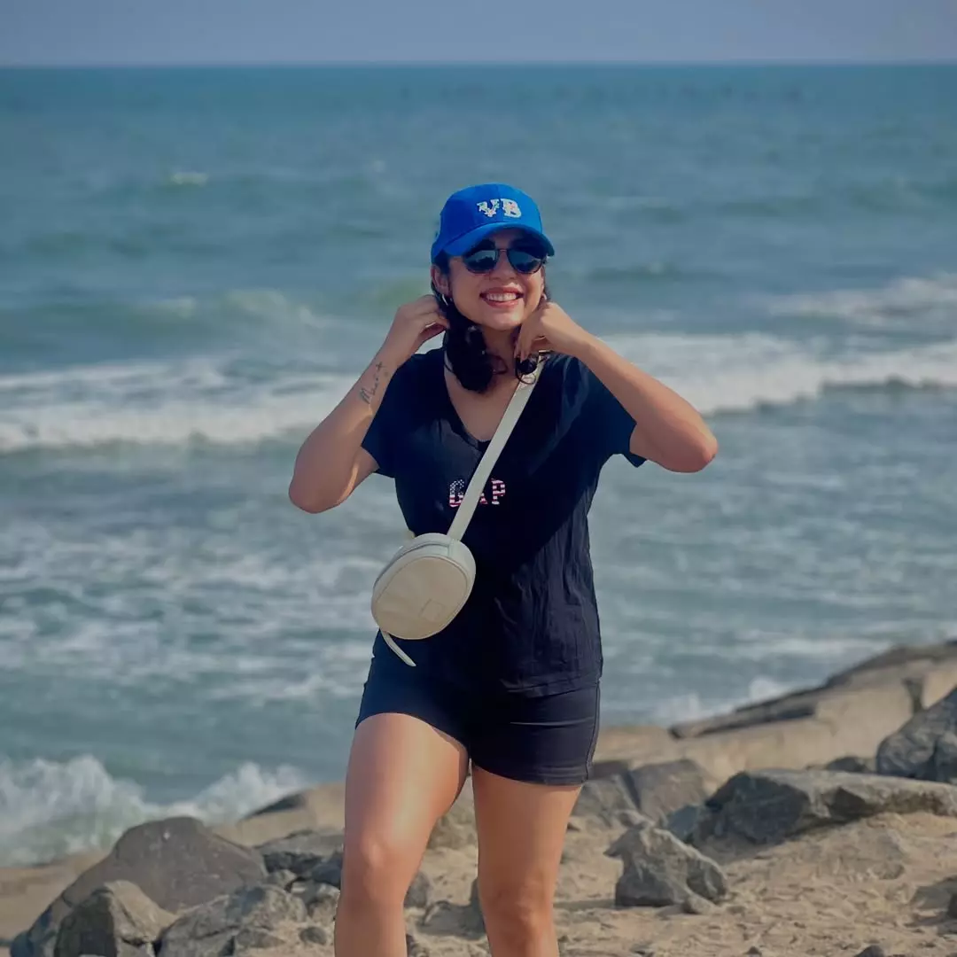 Radiating joy and vibrant energy, Varsha Bollamma looks absolutely breathtaking in this purple-and-cream traditional ensemble. With a radiant smile, flowing hair, and the pallu gracefully swirling in the air, the actress perfectly captures the festive spirit of Ugadi.