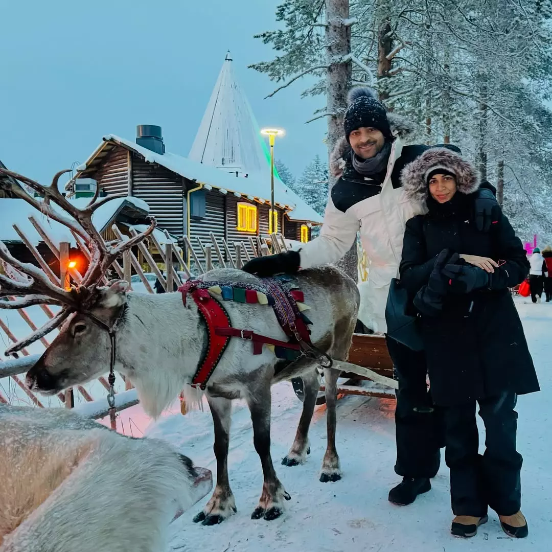 In the photos, Lavanya looked elegant in a shimmery embellished dress, while Varun wore a stylish white dress with feather details. Another adorable picture showed the couple posing with their baby boy, Vaayuv, whose face was covered with a heart emoji.