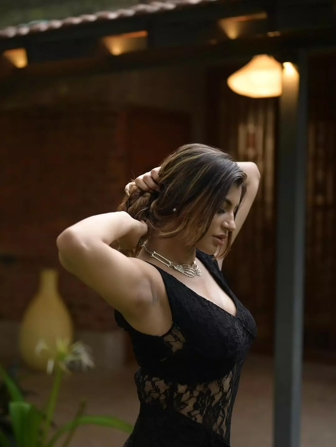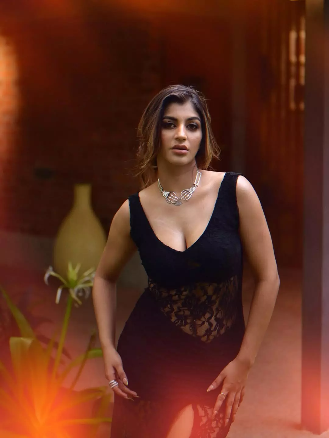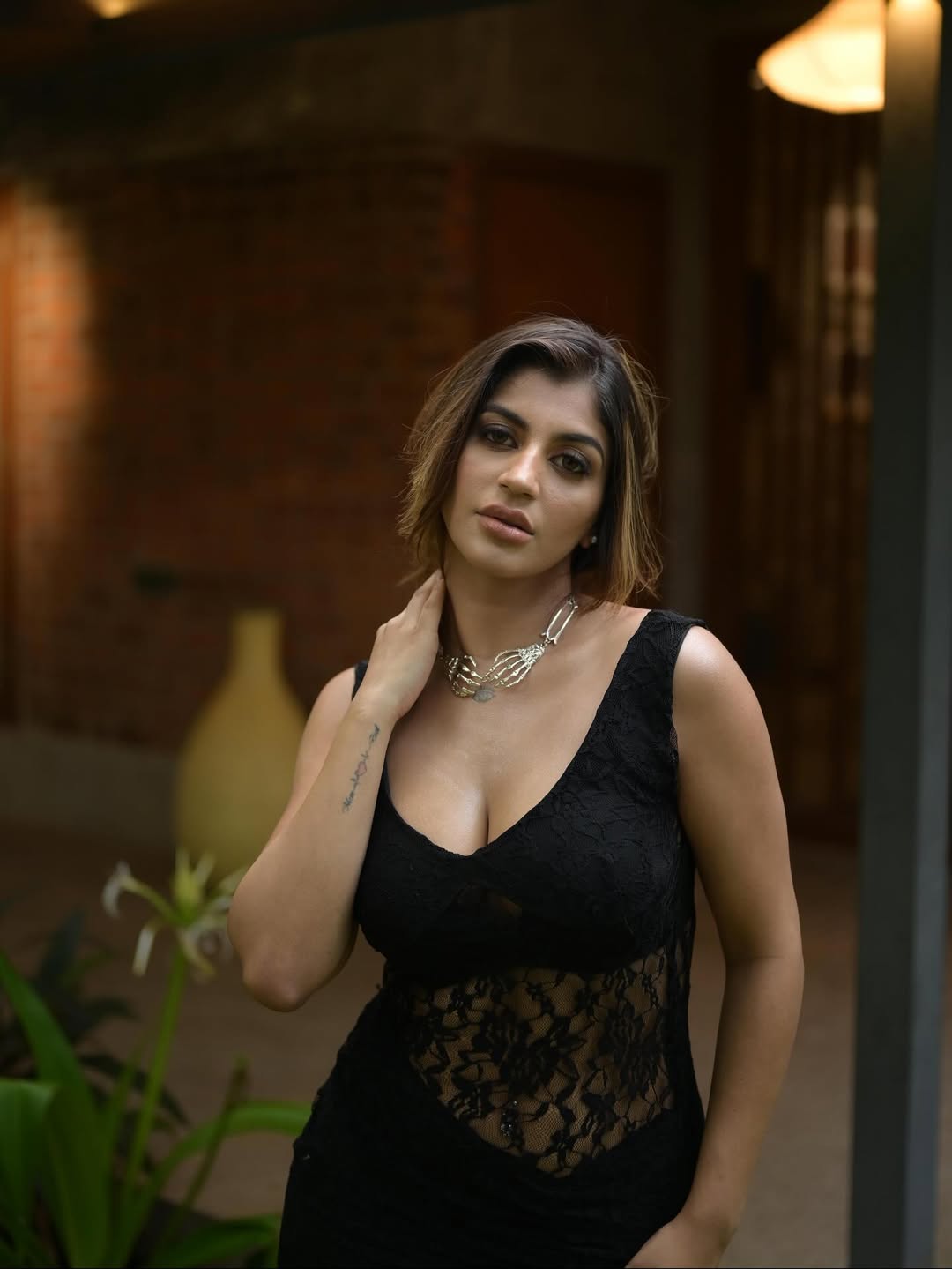 By: Tupaki Desk | 1 Sept 2025 10:25 AM ISTYashika Aannand has once again captured attention on Instagram with her stylish look. In her recent post, the actress is seen wearing a black lace dress and completed the look with a statement silver necklace and minimal makeup by giving her an elegant yet glamorous vibe. The background made her outfit stand out even more.