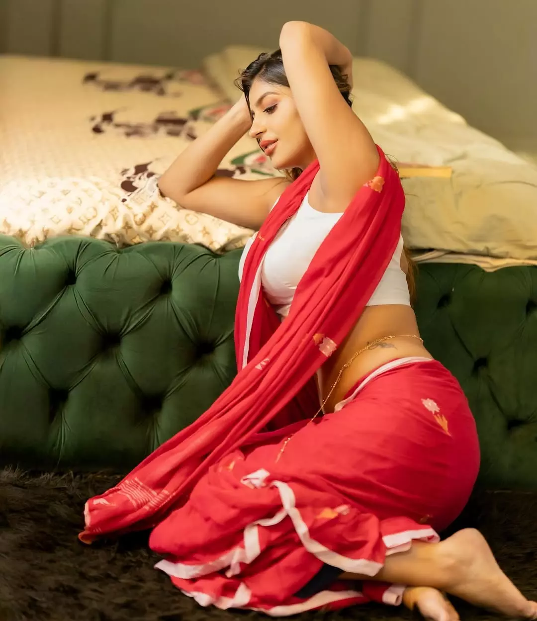 Yashika Aannand Radiates Elegance in a Stunning Red Saree