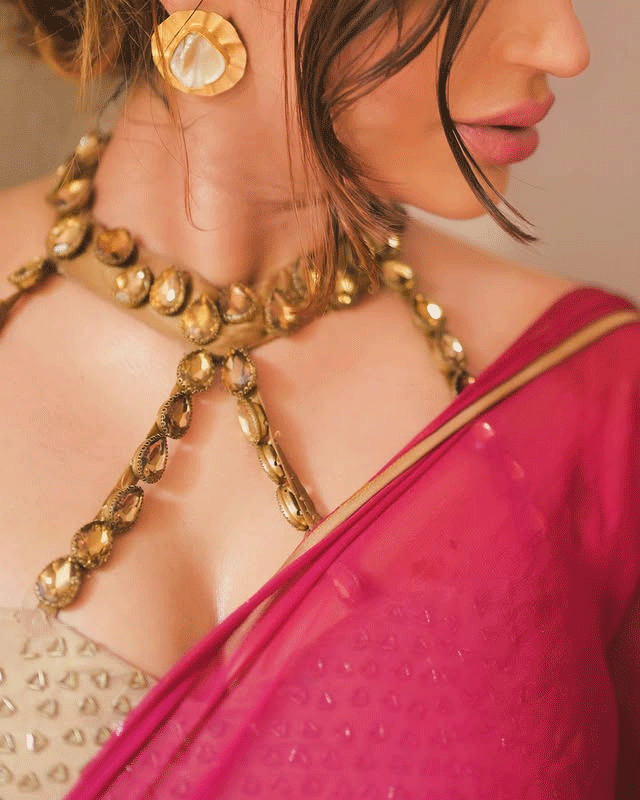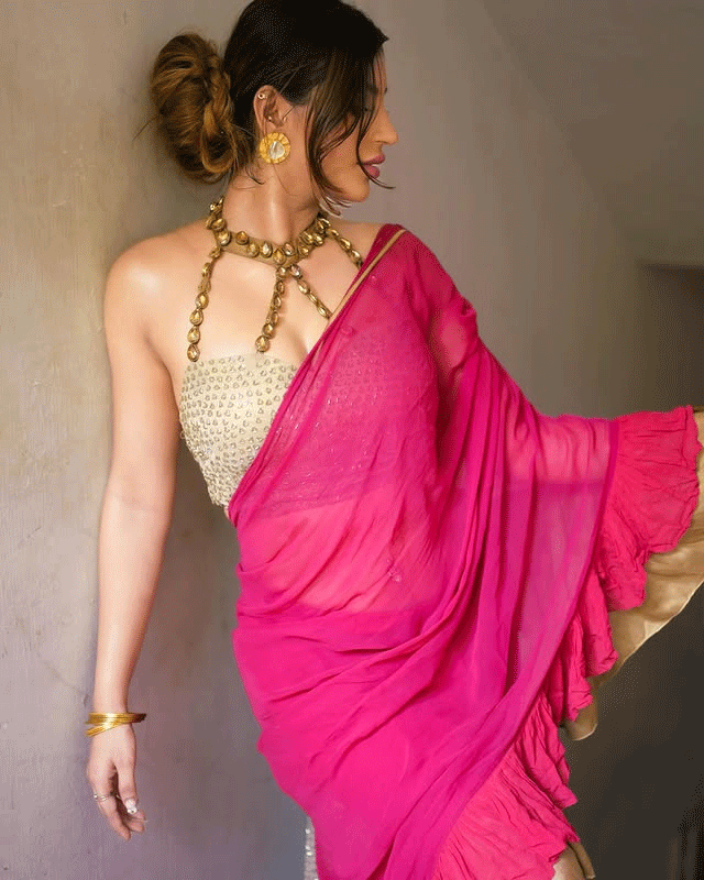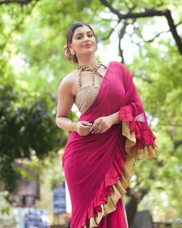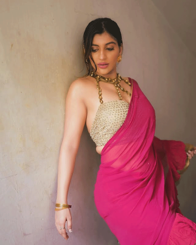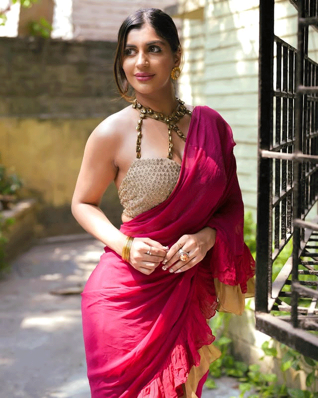 By: Tupaki Desk | 23 May 2025 10:04 PM ISTActress Yashika Anand recently shared a picture on Instagram that captured everyone's attention. She is seen dressed in a vibrant magenta saree paired with a modern golden blouse. The photo was taken in a sunlit alleyway, giving the image a natural and graceful vibe. She accessorized her look with chunky gold jewelry and subtle makeup that enhanced her features. Captioning the post, she wrote “How I love being desi <3 😌😲”