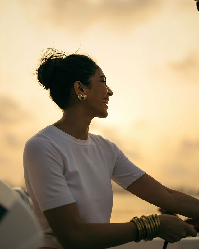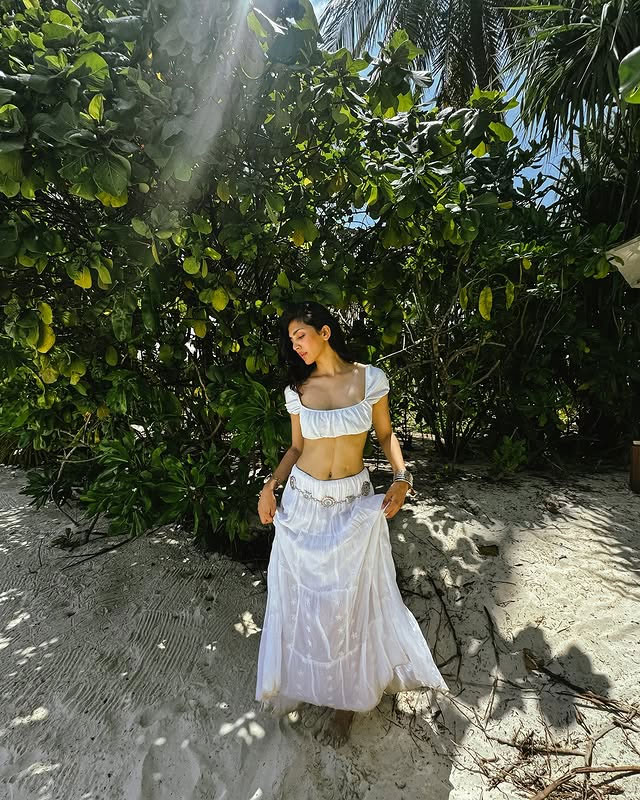 Yogita Bihani is turning heads with her recent Instagram post. She seen soaking up the sun by the ocean. She is dressed in a breezy white two-piece set seated on a modern stool by a wooden deck with endless blue waters stretching behind her. The caption is filled with emojis – “🧜‍♀️💗🐚.”