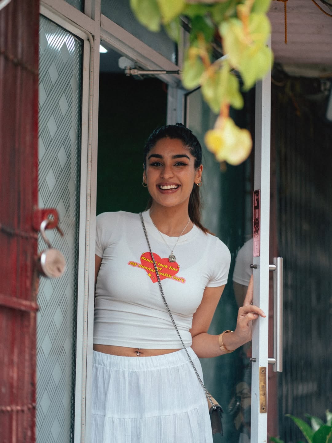 Yukti Thareja shared a new picture on Instagram that brought a wave of warmth to her followers. She sat by the seaside in Phuket and smiled at the camera. Her caption read, “Smiles are sunnier here 🍓💃🦋🤍.” The calm ocean behind her made the picture even more pleasant.