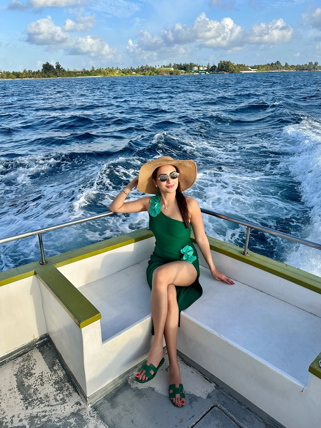 Zaara Yesmin looks radiant and effortlessly chic as she enjoys a breezy boat ride in the Maldives.