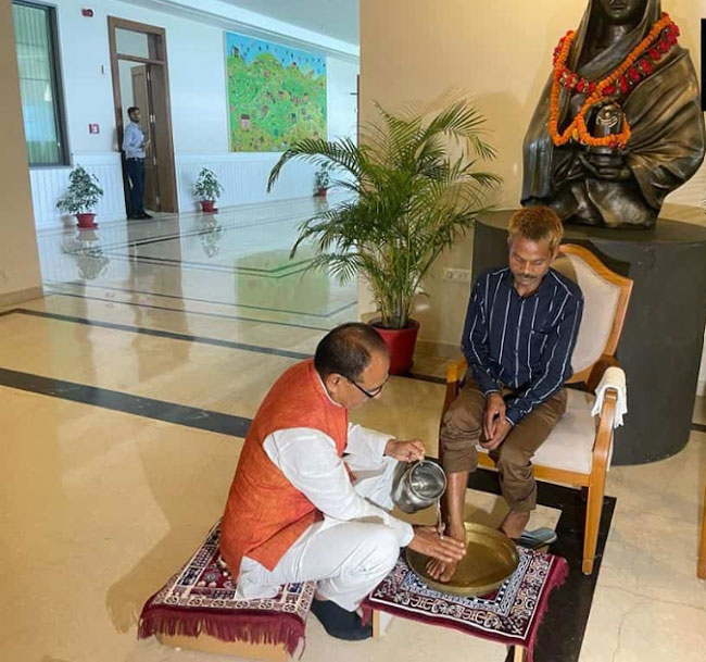 ఈ క్రమంలో సిద్ధి జిల్లాలో బీజేపీ నేత ప్రవేశ్‌ శుక్లా అవమానించిన గిరిజనుడికి ముఖ్యమంత్రి శివరాజ్‌ సింగ్‌ చౌహాన్‌ క్షమాపణ చెప్పారు. బాధితుడి పాదాలను కడిగి, అతడిని శాలువాతో సత్కరించారు. నిందితుడు ప్రవేశ్‌ శుక్లాపై కఠిన చర్యలు తీసుకోవాలని ఆదేశించారు.
