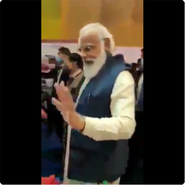 ఈ వీడియో చివర్లో ఆయన చేతులు ఊపిన తీరు.. ఆ సందర్భంగా ముఖంలో ఉన్న భావాలు కాస్త భిన్నంగా కనిపించక మానదు. మనకు తెలిసిన మోడీకి..ఈ వీడియోలోని మోడీ బిహేవియర్ కు కాస్త తేడా కొట్టేసే పరిస్థితి. ఇప్పుడున్న పరిస్థితుల్లో ముఖానికి మాస్కు తప్పనిసరి. ఆ విషయాన్ని ఆయన ఎందుకు మిస్ అవుతున్నట్లు?