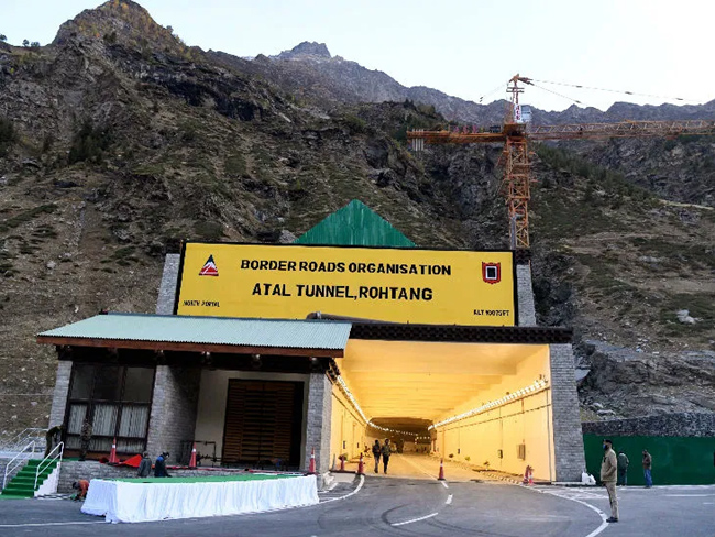 హిమాచల్ ప్రదేశ్లోని పీర్ పంజల్ పర్వత శ్రేణిలో నిర్మించిన ప్రపంచంలోనే అత్యంత పొడవైన రహదారి సొరంగం ‘అటల్ టన్నెల్'ను ప్రధాని మోదీ శనివారం ప్రారంభించారు.ఈ సొరంగ మార్గం ద్వారా సైనిక వాహనాల్లో జవాన్లను, సామాగ్రిని త్వరితగతిన తరలించవచ్చు. శీతాకాలంలో మంచు కురుస్తుండటంతో మనాలీ-లేహ్ల మధ్య మార్గాన్ని ఏటా ఆరు నెలల పాటు మూసి వేసేవారు. ఈ టన్నెల్ అందుబాటులోకి రావడంతో ఇక ఆ ఇబ్బంది ఉండబోదు. మరోవైపు, ఈ సొరంగం మనాలీ-లేహ్ల మధ్య 46 కిలోమీటర్ల దూరాన్ని తగ్గిస్తుంది.