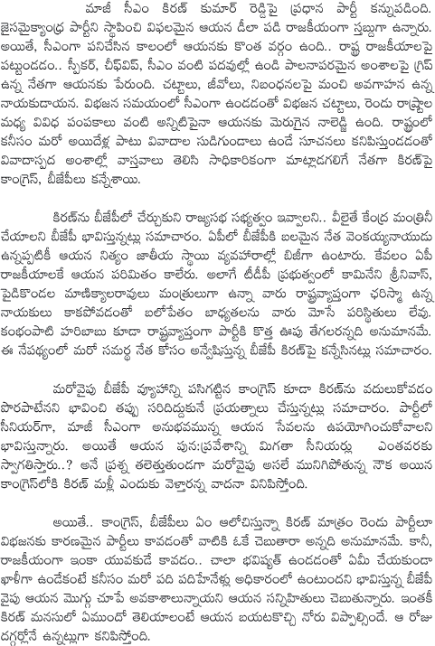 BJP Eyeing on Kiran kumar Reddy