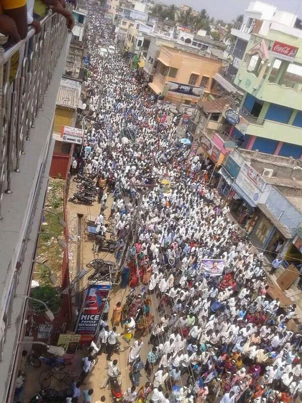 By: Tupaki Desk | 20 April 2014 10:47 AM ISTWe are aware that Samantha's stylist Neeraja Kona's father Raghupathi is the YSR Congress candidate for Bapatla Assembly Constituency. The above picture is nothing but his nomination rally.