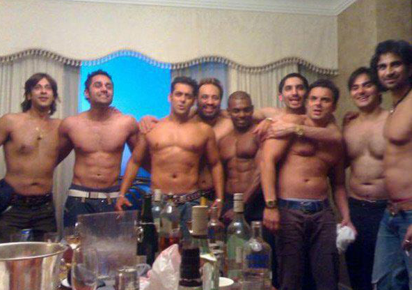 By: Tupaki Desk | 21 Jun 2013 6:51 PM ISTBollywood stars have a distinctive style when it comes to partying and at times the dress codes they follow makes you believe they are the craziest people on earth. Have a look at the shirtless alcohol bash organized by none other than Salman Khan for the guys who are in his close coterie, including his two brothers Arbaaz Khan, Sohail Khan and personal bodyguard Shera. All of them have taken the dress code too seriously and taken off their shirts to flaunt the abs. The empty bottles show the amount of alcohol they have consumed and the state of their minds while posing for the cameras. Crazy party this is, Isn't it?