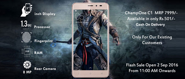 చాంప్ వన్ అనే సంస్థ 'చాంప్ వన్ సీ1 (CHAMPONE C1)' పేరిట రూ.7,999 ధర కలిగిన ఆండ్రాయిడ్ స్మార్ట్ ఫోన్ ను కేవలం రూ.501 కే అందిస్తామంటూ తాజాగా చేసిన ప్రకటన వినియోగదారులను ఆకర్షిచేస్తోంది. చాంప్ వన్ ఇండియా.కామ్ సైట్ లో రూ.51 చెల్లించి ముందుగా రిజిస్ట్రేషన్ చేసుకున్న వారికి సెప్టెంబర్ 2 ఉదయం 11 గంటలకు జరగనున్న ఫ్లాష్ సేల్ లో ఈ ఫోన్ లభ్యం కానుంది. ఆ సేల్ లో ఫోన్ ను కొనుగోలు చేసిన వారు డివైస్ ను అందుకోగానే క్యాష్ ఆన్ డెలివరీ రూపంలో రూ.501 చెల్లించాల్సి ఉంటుందని చాంప్ వన్ తన వెబ్ సైట్ లో వివరాలను పెట్టింది. మరోవైపు చాంప్ వన్ తన స్మార్ట్ ఫోన్ చాంప్ వన్ సీ1ను రూ.501 కే విక్రయిస్తామని చెప్పడం ఏమో గానీ ఆ సైట్లో ప్రస్తుతం రిజిస్ట్రేషన్లు ఆగిపోయాయి. మరో 24 గంటల తరువాత ప్రయత్నించండి అంటూ మెసేజ్ దర్శనమిస్తోంది. ఏది ఏమైనా ఫ్లాష్ సేల్ జరిగి వినియోగదారుల చేతికి ఈ ఫోన్ వచ్చే వరకు చాంప్ వన్ ను నమ్మలేమని పలువురు అభిప్రాయం వ్యక్తం చేస్తున్నారు. ఆ రోజు వస్తే గానీ ఆ సంస్థ నిజంగా రూ.501కి ఫోన్ ను ఇచ్చేది, లేనిది తెలియదని వారు అంటున్నారు.