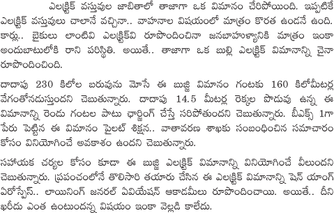China Launches Worlds First Electric Plane