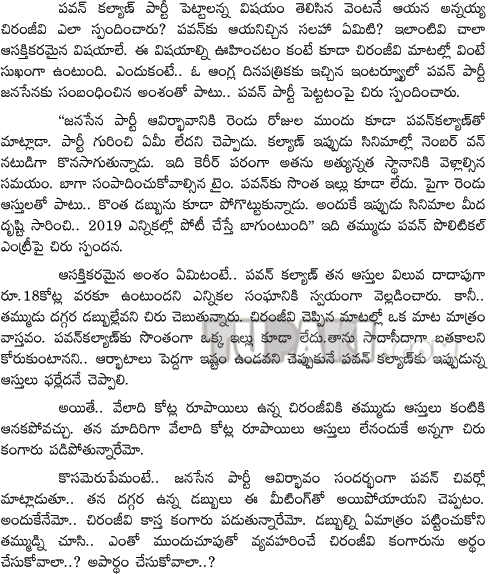 Chiranjeevi on Pawan kalyan