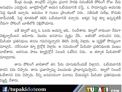 Chiranjeevi on Poling booth Issue