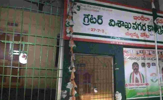 ఈ నేపథ్యంలోనే పార్టీ కార్యాలయాల అద్దెలు, వాటి నిర్వహణను కూడా భరించలేని పరిస్థితుల్లో కాంగ్రెస్ పార్టీ ఉందని టాక్ నడుస్తోంది. ఇందుకు నిదర్శనం... ఆస్తి పన్ను చెల్లించనందుకు విశాఖ నగర కాంగ్రెస్ పార్టీ కార్యాలయానికి గ్రేటర్ విశాఖ మున్సిపల్ కార్పొరేషన్ (జీవీఎంసీ) అధికారులు తాళం వేశారు. సుమారు 37 ఏళ్ల నుంచి ఇంటి పన్ను చెల్లించాల్సి ఉందని, రూ.24 లక్షల మేర బకాయి ఉన్నట్టు ఆ పార్టీ నాయకులకు అధికారులు సమాచారం అందించారు.