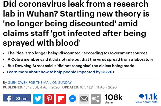 ల్యాబ్ నుంచే కరోనా పుట్టింది.. డెలీ మెయిల్ సంచలన కథనం