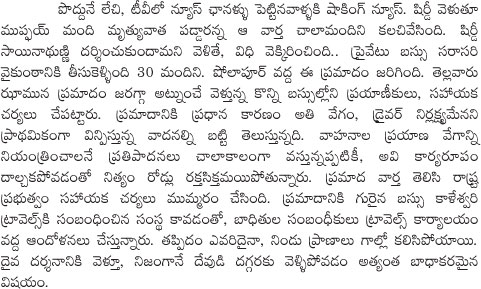 hyderabad shirdi bus accident