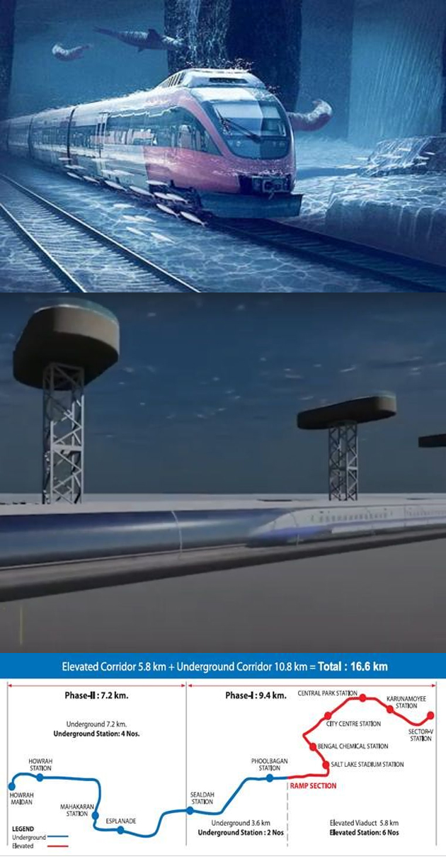 ఇక ఈ ఈ సర్వీస్ ఎక్కడి నుంచి ఎక్కడి దాకా నడుస్తుందన్న విషయానికి వస్తే... కోల్ కతా మెట్రో లైన్-2.. అంటే ఈస్ట్-వెస్ట్ మెట్రో కిందకు వస్తుంది. 16 కి.మీ లైన్ వరకూ వేయనున్న ఈ ట్రాక్ పనులు రెండు దశలుగా జరుగుతాయి. సాల్ట్ లేక్ సెక్టార్ 5 స్టేషన్ ను సాల్ట్ లేక్ స్టేడియం స్టేషన్ తో కలుపుతూ 5 కిలోమీటర్ల విస్తీర్ణంలో మొదటి దశ ఉంటుంది. దీన్ని ఈ నెలాఖరు నాటికి ప్రారంభించాలని రైల్వే శాఖ భావిస్తోంది. ఆ కొత్త మెట్రో మార్గం ప్రయాణ సమయాన్ని గణనీయంగా తగ్గిస్తుందట. ఈ మెట్రో సొరంగాల నిర్మాణం ఏప్రిల్ 2017లో చివరలో ప్రారంభం కాగా 30మీటర్ల లోతులో 520 మీటర్ల వరకూ రెండు సొరంగాలు ఏర్పాటు చేశారు. జర్మనీ నుంచి రచ్నా - ప్రేర్నా అనే రెండు టాప్-ఆర్డర్ టన్నెల్ బోరింగ్ యంత్రాలను తెప్పించారు. అలాగే నీరు లీకేజీని నివారించడానికి నాలుగు రక్షణ కవర్లు కూడా ఉన్నాయి.