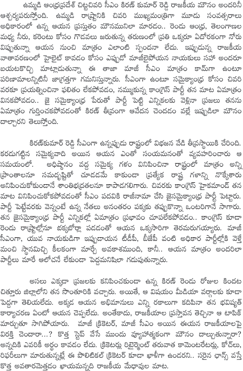 Kiran Kumar Reddy In State Politics