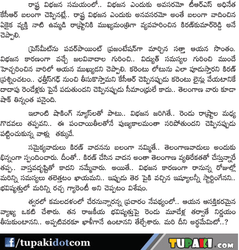 Kiran kumar Reddy on AP bifurication