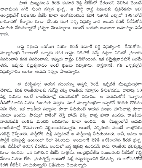 Kiran Kumar Reddy TO Join BJP