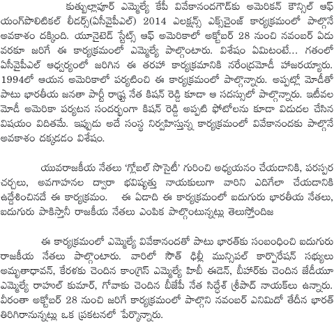 Kp vivekananda goud to attend acypl