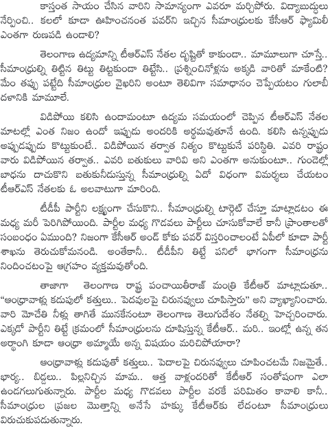 KTR comments on Seemandhra People