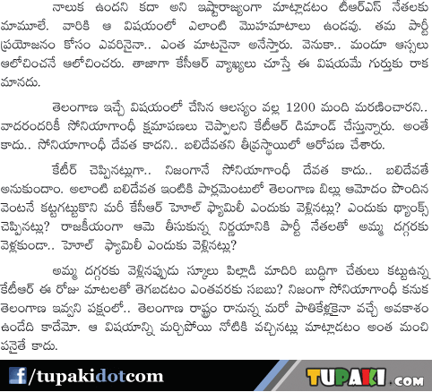 KTR COmments on Sonia Gandhi