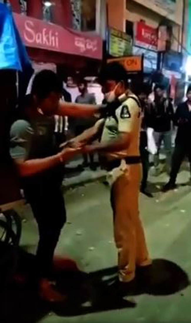 అమీర్ పేట నడిబజారులో పోలీసు మీద చెయ్యి వేసి మరీ వార్నింగ్