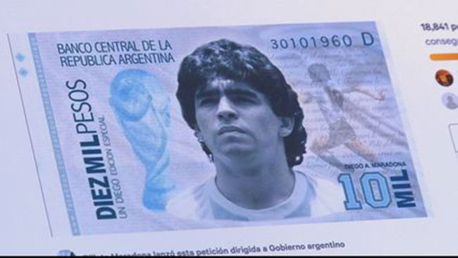 మారడోనాను గౌరవించుకోవటంతోపాటు.. ఆర్థిక లావాదేవీల పరంగా ఆలోచించి.. ఈ నిర్ణయాన్ని తీసుకోవాలని భావిస్తున్నట్లు చెబుతున్నారు. ఎందుకంటే.. అర్జెంటీనాకు వచ్చే వారు తాము అమితంగా ఆరాధించే మారడోనాను తమతో తీసుకెళ్లేందుకు ఇష్టపడతారని భావిస్తున్నారు. కరెన్సీ నోటు మీద ఆటగాడి బొమ్మ అరుదైన గుర్తింపుఅతడికే కాదు.. ఆ దేశానికి కూడా అన్న దాన్లో మరో మాటకు అవకాశం లేనట్లే.