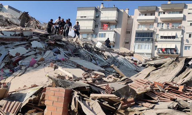 ప్రధానంగా టర్కీలోని నాలుగో పెద్ద నగరమైన ఇజ్మిర్ను భూకంపం వణికించింది. 45 లక్షల మంది ఈ నగరంలో నివాసముంటున్నారు. భూప్రకంపనలతో జనం వీధుల్లోకి పరుగులు పెట్టారు. భారీ భవనాలు నేలమట్టం అయ్యాయి. సుమారు ఆరు భవనాలు నేల మట్టమయ్యాయి. సెంట్రల్ ఇజ్మీర్ లోని 20 అంతస్తుల భవనం ఒక్కసారిగా కుప్పకూలింది. ఒక్క బేరాక్లి జిల్లాలోనే 10 భవంతులు నేల మట్టమయ్యాయి. టర్కీలోని ఏజియన్ సముద్రంలో భారీ భూకంపానికి అలలు పెద్ద ఎత్తున ఎగిసిపడ్డాయి. సునామీ భయంతో ప్రజలు రోడ్లపైకి పరుగులు తీశారు. ఇజ్మిర్ సమీపంలో చిన్నపాటి సునామీ రావడంతో సముద్రపు నీరు వీధుల్లోకి వచ్చింది. పలు వాహనాలు నీళ్లలో కొట్టుకుపోయాయి.