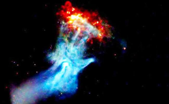 తాజా ఫొటోని నాసాకి చెందిన చంద్ర ఎక్స్-రే అబ్జర్వేటరీ తీసింది. సూపర్ నోవా నక్షత్రం పేలిపోవడంతో వచ్చిన దుమ్ము, దూళి, పదార్థాలన్నీ కలిసి... ఇలా చెయ్యి ఆకారంలోకి మారాయి. ఇందులో పసుపు రంగులో ఉన్నది పల్సర్. ఇది చాలా శక్తిమంతమైనది. దీన్ని సైంటిఫిక్ గా PSR B1509-58 అని పిలుస్తారు. ఇది సుమారుగా 19 కిలోమీటర్ల విస్తీర్ణంలో ఉంది. భూమి నుంచి 17,000 కాంతి సంవత్సరాల అవతల ఈ దృశ్యం ఏర్పడింది.