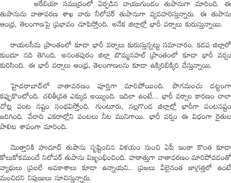 Nilofer cyclone Effect on Telangana And andhra