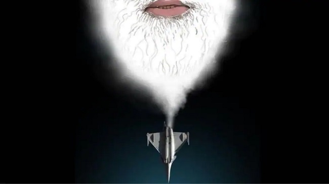తాజాగా.. రాహుల్ సోషల్ మీడియా వేదికగా నరేంద్ర మోడీకి కౌంటర్ వేశారు. ఇందులో భాగంగా ఓ ఫొటో షేర్ చేశారు. ఆ ఫొటోలో రఫేల్ విమానం పొగ వదులుతూ వెళ్తోంది. అయితే.. వెనకాల మాత్రం ఆ పొగతో తెల్లటి గడ్డంతో కూడిన మనిషికి ఆకారం కనిపిస్తోంది. అది నరేంద్ర మోడీ పిక్చర్ అన్న విషయం చూడగానే ఎవరికైనా అర్థమైపోతుంది.