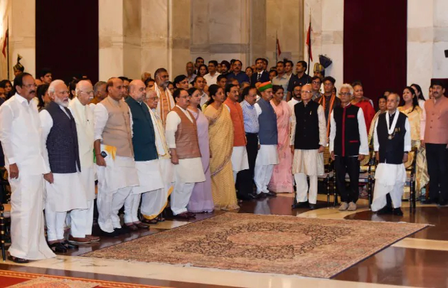 ఇంతటి ముఖ్య కార్యక్రమానికి కాంగ్రెస్ కు చెందిన కీలక నేతలు.. పార్టీకి ముఖంగా చెప్పే గాంధీ ఫ్యామిలీకి చెందిన ఏ ఒక్కరూ రాకపోవటం ఇప్పుడు చర్చనీయాంశంగా మారింది. రాష్ట్రపతి చేతుల మీదుగా అవార్డును తీసుకున్న తర్వాత ప్రణబ్ దా నేరుగా వెళ్లి ఉప రాష్ట్రపతి వెంకయ్య.. ప్రధాని మోడీ వద్దకు వెళ్లి వారితో కరచాలనం చేశారు. అనంతరం అదే వరుసలో ఉన్న అద్వానీ.. అమిత్ షా.. రాజ్ నాథ్ లకు షేక్ హ్యాండ్ ఇచ్చారు.