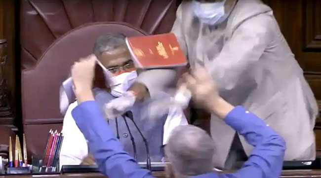రాజ్యసభలో రణరంగం..వ్యవసాయ బిల్లులకు ఆమోదం