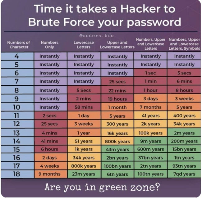 10 అక్షరాలతో నంబర్స్.. అప్పర్ కేస్ మరియు లోయర్ కేస్.. స్పెషల్ సింబల్స్ ను ఉపయోగించడం వల్ల ఆ పాస్ వర్డ్ ను బ్రేక్ చేయడం కు హ్యాకర్స్ కు 5 ఏళ్లు పడుతుందని నిపుణులు చెబుతున్నారు. ఎంత ఎక్కువ అక్షరాలతో పాస్ వర్డ్ ఉంటే అంత స్ట్రాంగ్.. అయితే అందులో అప్పర్ కేస్.. లోయర్ కేస్.. నెంబర్స్ మరియు స్పెషల్ సింబల్స్ ఉన్నప్పుడు మాత్రమే స్ట్రాంగ్ అంటూ నిపుణులు చెబుతున్నారు.