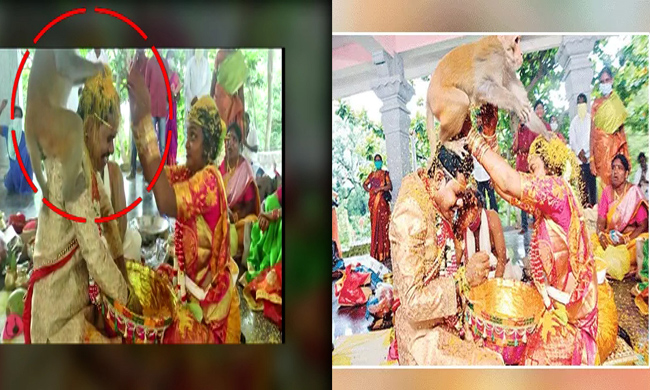 By: Tupaki Desk | 12 Sept 2020 3:40 PM ISTకరోనా వ్యాప్తి మొదలవగానే ఎన్నో పెళ్ళిళ్ళు వాయిదా పడ్డాయి. ముందు ఏ నెలో రెండు నెలలో ఉంటుందనుకున్న కరోనా పది నెలలు గడిచినా పరిస్థితిలో ఎటువంటి మార్పు లేకపోవడంతో ఇక తప్పదన్నట్లుగా తూతూమంత్రంగా పెళ్లిళ్లు చేసుకుంటున్నారు. పెళ్లిళ్లకు వెళ్తే ఎక్కడ కరోనా అంటుకుం దోనని చాలా మంది భయపడుతున్నారు. దీంతో జనం లేక పెళ్లిల్లలో ఒకప్పటి కళ తగ్గిపోయింది. అసలు పెళ్లి సందడే కనిపించడం లేదు. అబ్బాయి తరఫున పది మంది అమ్మాయి తరఫున పది మంది వచ్చి పెళ్ళి తంతు ముగించి వెళ్ళి పోతున్నారు. తాజాగా పెళ్లి చేసుకున్న ఓ జంట కు వానరం షాకిచ్చింది. ఓ జంట పెళ్లి వేడుకల్లో తలంబ్రాలు పోసుకుంటుండగా ఓ వానరం అక్కడికి వచ్చి వధూవరులను ఆశీర్వదించి వెళ్ళింది. దీంతో పెళ్లి కి వచ్చిన వాళ్లంతా ఆశ్చర్యపోయారు. ఈ సంఘటన ములుగు జిల్లాలో జరిగింది.