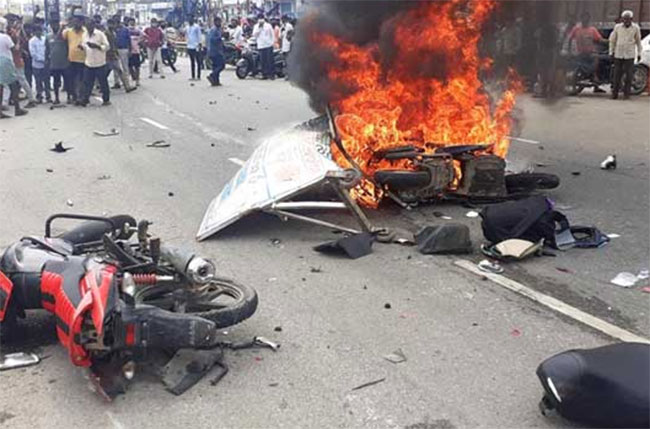 చౌటుప్పల్ హైవే సిగ్నల్స్ రెడ్ పడటంతో తన బైక్ ను ఆపారు. గ్రీన్ సిగ్నల్ పడి.. నాగరాజు ముందున్న వాహనం ఒక్కొక్కటి నెమ్మదిగా కదులుతున్న వేళ.. వెనుక నుంచి అమితమైన వేగంతో వచ్చిన బ్రీజా కారు నాగరాజు నడుపుతున్న బైక్ ను బలంగా ఢీ కొట్టి ముందుకు వెళ్లింది. అనూహ్యంగా చోటు చేసుకున్న ఈ ప్రమాదంలో బైక్ లో మంటలు చెలరేగాయి. బైక్ పూర్తిగా కాలిపోగా.. అందులో నాగరాజు తీవ్రంగా గాయపడ్డాడు.