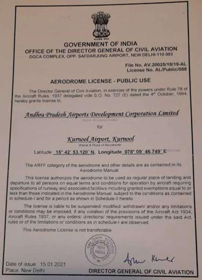 తాజాగా దీనికి సంబంధించి డైరెక్టరేట్ జనరల్ ఆఫ్ సివిల్ ఏవియేషన్ అనుమతి లభించింది. ఈ ఏడాది మార్చి నుంచి విమానాల రాకపోకలు.. వాటి కార్యకలాపాలకు ఏరోడ్రోమ్ లైసెన్స్ జారీ చేసినట్లుగా కర్నూలు ఎయిర్ పోర్టు అధికారులు వెల్లడించారు. దీంతో.. ప్యాసింజర్ విమానాల రాకపోకలు చాలా తొందర్లోనే షురూ అవుతాయని చెప్పక తప్పదు.