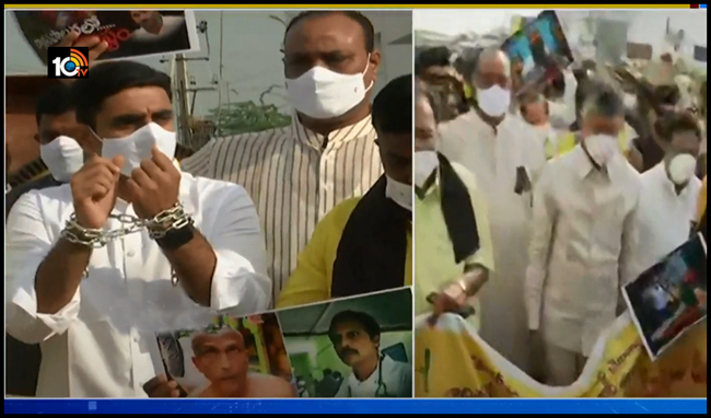 సంకెళ్ల తో అసెంబ్లీకి వెళ్లిన టీడీపీ నేతలు !