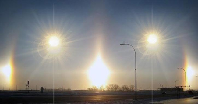 అలా ఏర్పడిన వాటిల్లో చాలావరకు కరిగిపోతాయి. మిగిలినవి గుండ్రంలా వలయంలా ఏరపడతాయి. వాస్తవానికి వలయం లోపల అవి ఉండవు. వలయం పక్కన ఆకాశంలో అవి ఉంటాయి. అవి లేని చోట కాంతి ఎక్కువగా.. ఉన్న చోట తక్కువగా ఉంటుంది. మంచుకణాలతో సిర్రస్ మేఘాలు ఏర్పడి.. ఆ మేఘాల మీద సూర్య కిరణాలు పడినప్పుడు సూర్యుడి ప్రతిరూపం ఏర్పతుందని చెబుతున్నారు. దీంతో ఒక సూరీడికి బదులుగా రెండు.. మూడు.. ఐదు.. చొప్పున కనిపిస్తాయి. అయితే.. అవి చాలా తక్కువ సమయమే ఉంటాయి. కానీ.. తాజాగా మాత్రం ఏకంగా మూడు గంటల పాటు ఉండటం విశేషం.
