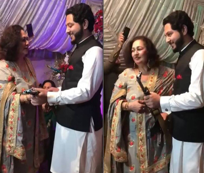 పాకిస్థాన్లో‘కలాష్నికోవ్’ అనే సాంప్రదాయం ఉంది. ఈ ఆచారం ప్రకారం అత్తగారు.. కొత్త అల్లుడిగి ఏదో ఒక మారణాయుధం గిఫ్ట్గా ఇవ్వాలట. అందులో భాగంగానే ఈ గిఫ్ట్ ఇచ్చిఉంటారని సమాచారం.