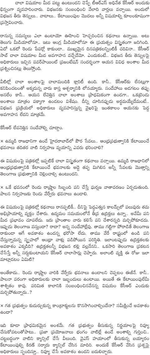 TRS Chief KCR Has No Idea on Division Process
